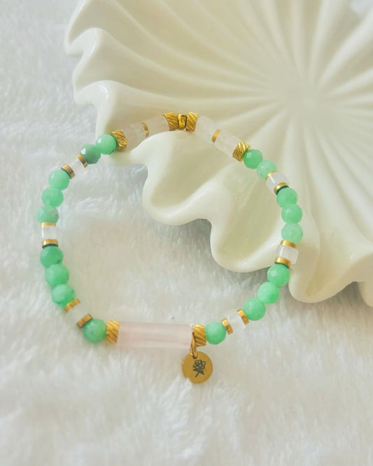 Bracelet "Riya" Perles Jade vert, Quartz Rose